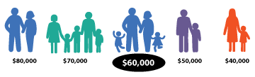 Household Income — The sum of the pretax cash income for all people aged 15 and older living in the same housing unit, whether they are related or not, as defined by the U.S. Census. Household income includes all wages, salaries, self-employment, investments, Social Security, and cash benefits. It does not include non-cash benefits like health insurance or food assistance.