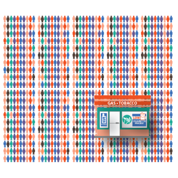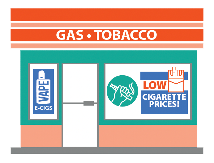 The tobacco retail environment, including convenience stores, gas stations, tobacco/vape shops, and other outlets, is the primary setting for the selling and marketing of tobacco/nicotine products. Youth are especially susceptible to tobacco access and marketing. Research supports that easy access to tobacco products, tobacco displays, discounts, and advertisements normalizes tobacco use, and increases the chances youth will try tobacco and use tobacco in the future. Retail exposure to electronic-cigarette (vape) ads is linked to a higher likelihood of vape use, vape brand preference, and a perception that vapes are less harmful than cigarettes.