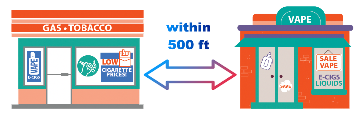 Tobacco Retail Proximity — describes the number and/or percentage of tobacco retailers within a specific distance from a specific location.